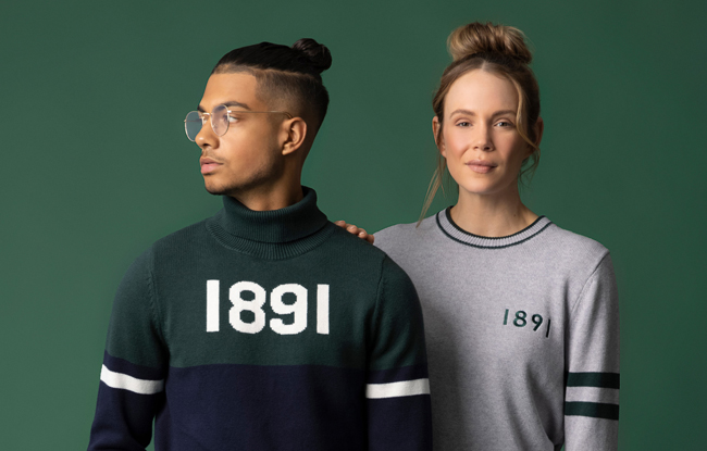 Soft, comforting and warm, the LONDON roll neck, has the ‘1891’ logo intarsia-knitted on the chest celebrating a long-lasting sporting heritage and adding casual styling to the Touch of Cashmere collection. The colour-blocked chest continues onto the sleeves with a stripe beneath to compliment the 1891 intarsia. It is made from a blend of the finest quality combed cotton and cashmere, for a sweater of incredible softness and lustre. This unisex mid-weight sweater has a somewhat relaxed shape and is available in two colour combinations – Navy/Bottle/White and Light Grey Marl/Navy/White. RRP £80.