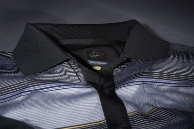 Greg Norman’s influence on the Cliffside Beach range colourway palate is clearly evident as it complements both the Hyde Park and Monteverde collections. Reminiscent of Norman’s winning hey days, the Cliffside Beach collection uses one of his favourite combinations of nile blue, navy and white with the addition of honey and amazon tones for a fresh new look for 2012. The range of polo shirts, in keeping with the Greg Norman signature, feature full and half stripes cut on the bias, as well as block panel designs.