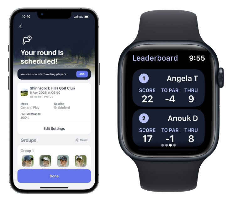 Designed to make social golf easier, more engaging, and entirely seamless, LivePlay introduces live scoring, automatic player groupings, and smartwatch integration — all within the familiar Hole19 ecosystem.