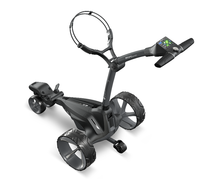 The M7 GPS REMOTE offers ultimate versatility, allowing golfers to switch effortlessly between remote control and handle control modes at the push of a button. Other key features include an on-screen battery meter, a USB charging port, compact folding with inverting wheels to fit into the smallest of spaces and a rechargeable remote handset, making it a comprehensive solution for modern golfers.