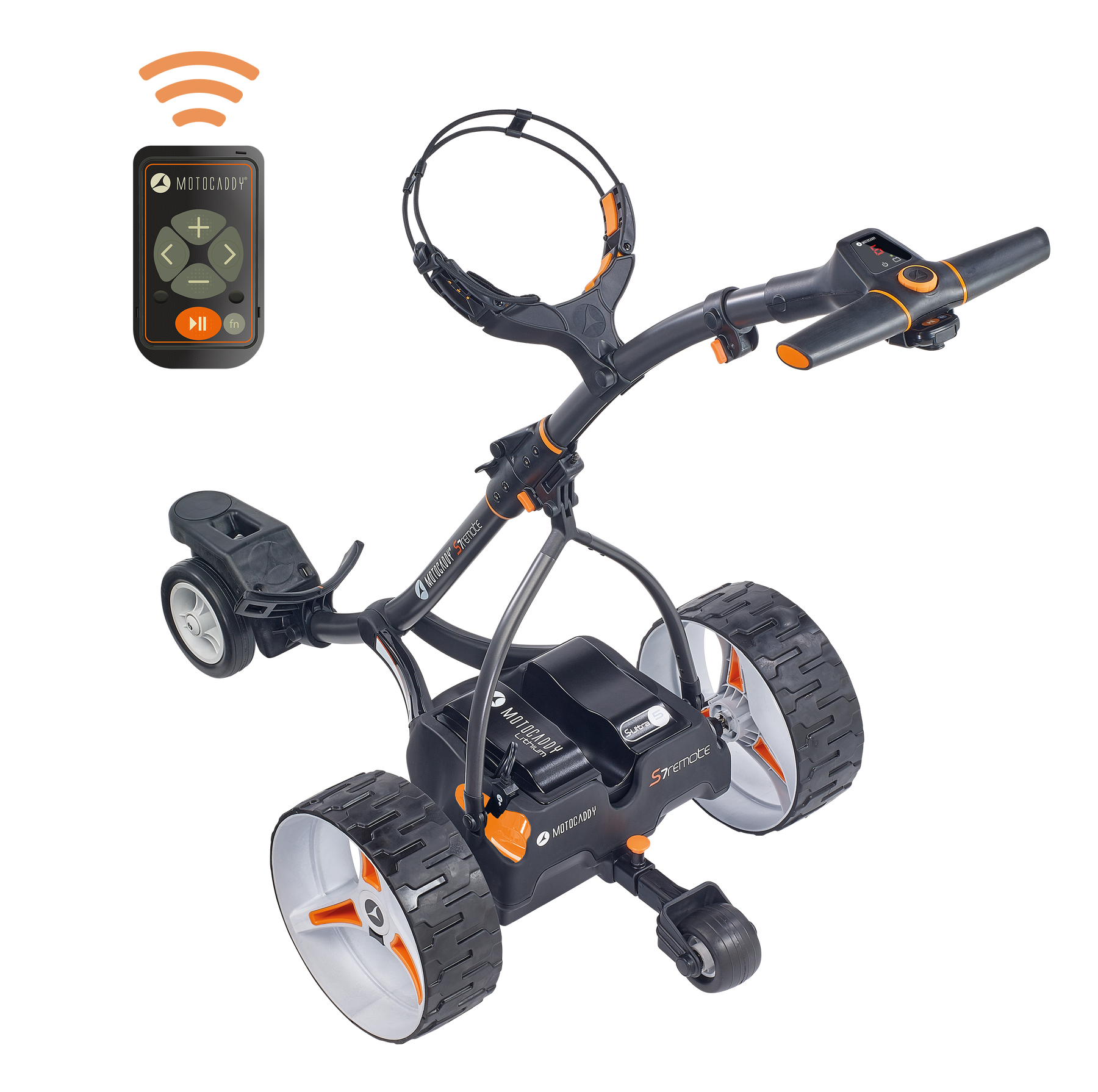 The latest S7 REMOTE incorporates a number of new improvements from the original hands free model introduced in 2015. These include a more compact fully rechargeable remote control Lithium handset that fits neatly into an integrated holder located on the underside of a new soft-touch ergonomic handle. The handset can also be topped up during play thanks to the patented USB port that can also charge GPS and mobile devices.