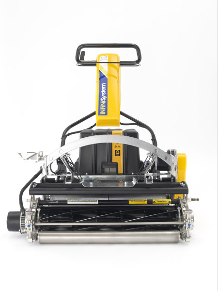 The unique floating head mechanism has a ‘dynamic return’ feature that is constantly trying to spread the weight of the machine evenly, even when on steep slopes. This feature enables the 26” INFiNiSystem™ to offer increased productivity because of the wide width, but with no compromise to finish due to surface scraping that some competitor machines would have.