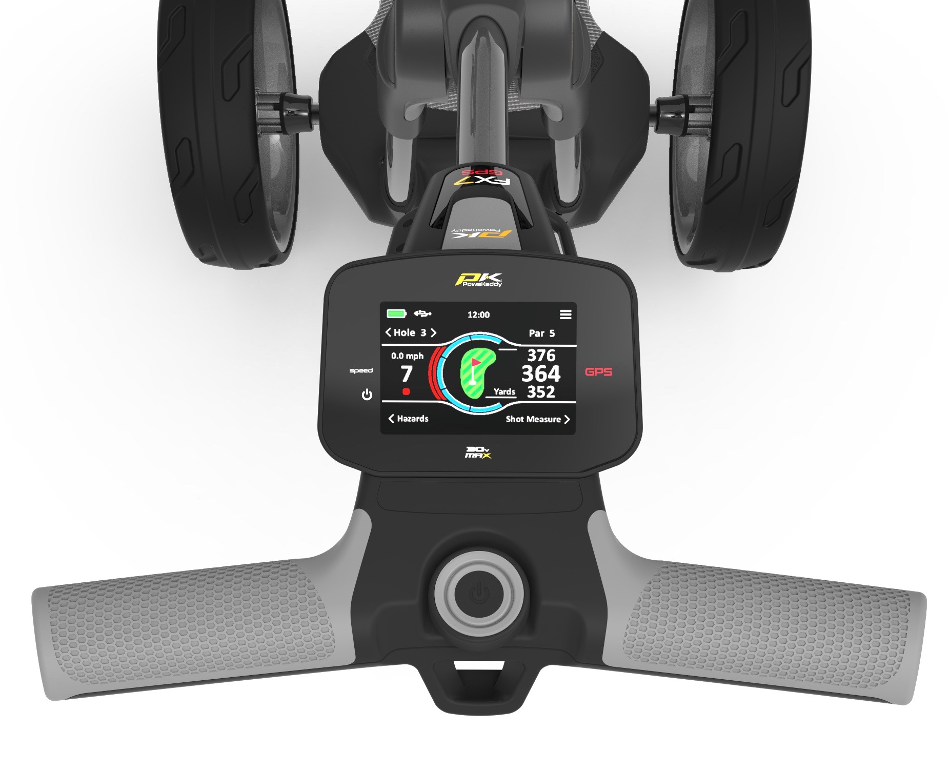 Spearheading the new ‘FX Collection’, which replaces the Freeway name, is the all-new FX7 GPS, which boasts touch screen GPS technology, as well as a new PowaFrame chassis and hi-tensile alloy, while the new 1-Click folding system enables the entire frame to fold down 20% smaller than previous models. The GPS offers distances to the front, middle and back of greens, as well as hazards, and the screen also boasts a scorecard function. Other features include a new optional self-sensing electronic braking system that automatically slows the trolley on steep inclines.