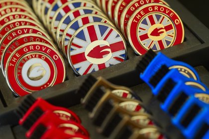 The collection, encompassing ball markers, pom head covers, blade and mallet putter head covers, divot tools, towels and collectible teddy bears, is a joint venture between PRG and The Grove and features a distinctive red, white and blue theme in homage to the revived British Masters, which returned to the European Tour calendar last year and will this year visit the one-time WGC venue in Chandlers Cross from October 13-16.