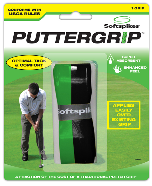 Designed to provide superior tack, more comfort, and greater absorbency than traditional grips, the new Softspikes PutterGrip allows golfers to enhance their putter grip for a fraction of the cost, and in less than half the time spent on traditional re-gripping. During a challenging economic golf climate, the PutterGrip brings a cost effective solution to traditional re-gripping, without compromising performance. In fact, Softspikes PutterGrip has the feel, durability and cushioning of today’s high performance grips, yet requires no tools for the re-gripping process.