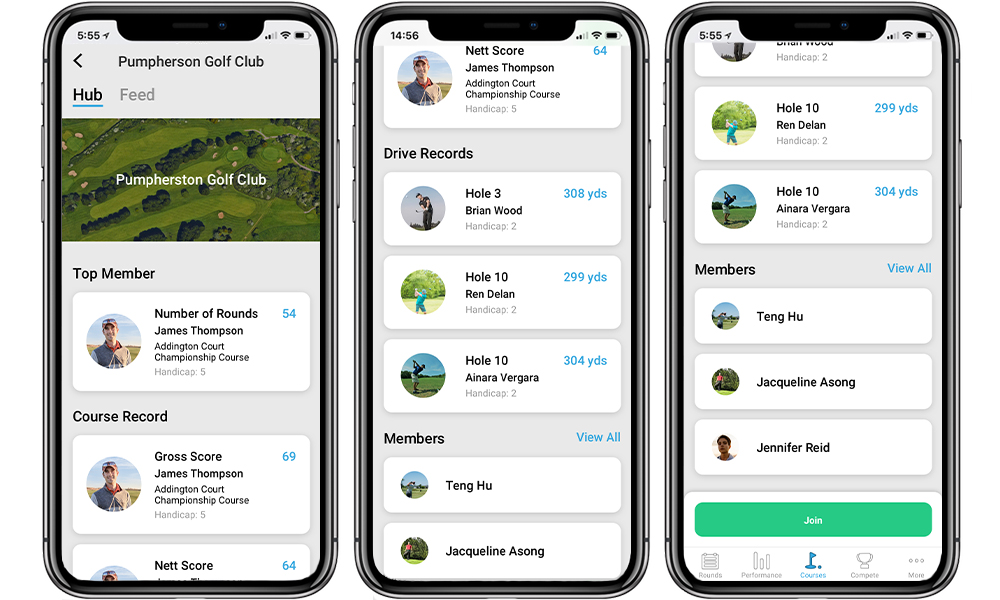 Unlike any other social community in golf, users can simply search for a golf club and instantly gain access to a wealth of data, such as gross and net course records, longest drives, hole-by-hole statistics, birdies and much more. This will allow golfers who are going to play at a specific course for the first time to view how other users have played it before their round and pick up useful course management tips.