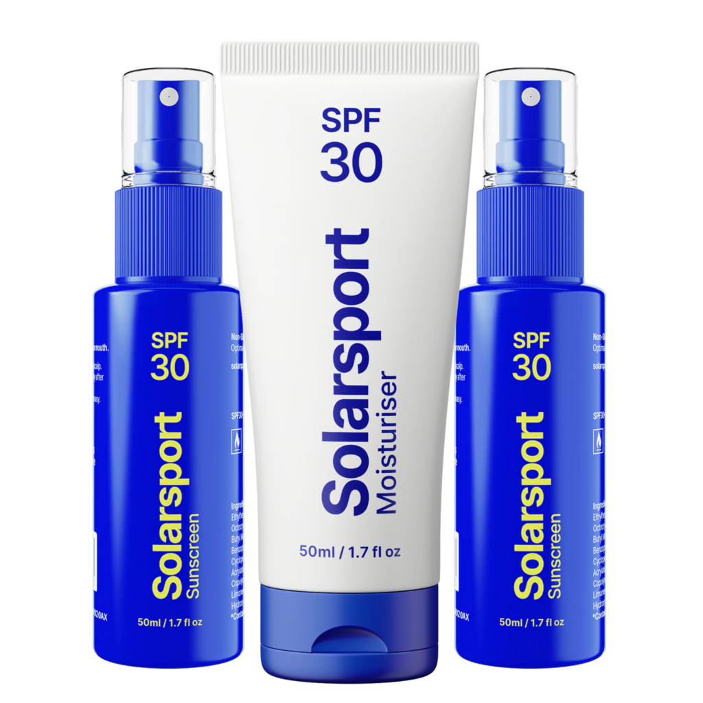 The Solarsport Essential Skincare Set, which includes 2 x 50ml bottles of Solarsport SPF30 Sunscreen and 1 x 50ml tube of Solarsport SPF30 Moisturiser, is available now on the brand’s website.