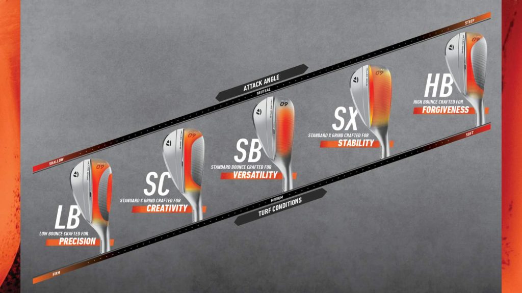 MG5 wedges feature six different grinds to give golfers a wide array of options to fit their game. Three of those grinds fit TaylorMade’s standard bounce profile that the majority of golfers gravitate toward: the SB, SC and SX grinds.