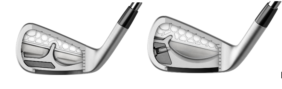 Moving weight lower and towards the perimeter of the club further allowed engineers to design for improved forgiveness and control CG positioning. Within the scoring clubs (8-PW), CG progressively shifts higher for more control, better spin properties and enhanced accuracy.
