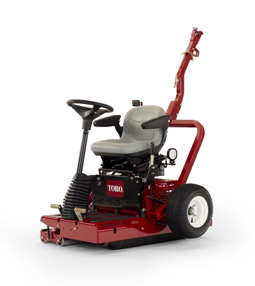 The new Toro GreensPro 1260 is the company’s latest greens roller. It takes all the excellent features of the previous Toro GreensPro models and adds overlapping heads for a consistent roll over every pass, a quick latch coupler and pivot handle to easily transition from roll to transport, many easy maintenance features including only one grease point and added comfort such as a bi-directional seat adjustment lever, armrests and a rubber isolation mount, to name but a few.