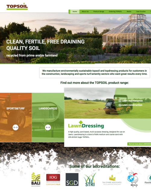 A no-nonsense menu bar provides all the options you need, including information on how and where TOPSOIL products are manufactured and the stringent testing regime they undergo; individual product specifications and applications; a helpful product-specific calculation tool for designers, contractors and specifiers; how to plan an order and prepare for delivery; and product case studies.