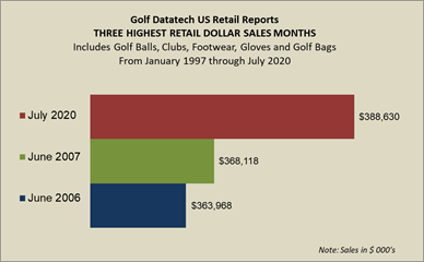 July’s total on- and off-course equipment sales of $388.6 million beat the next two all-time highest sales months ever of June 2007 ($368m) and June 2006 ($364m).