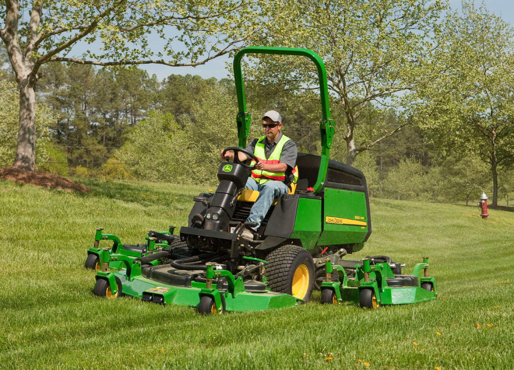 Each wing has a breakaway feature that allows the mower deck to move back and away from any obstacle, then automatically reset to the normal working position. Other operator friendly specifications include electronic cruise control, hydrostatic power steering and a tiltable steering wheel, and the ROPS can be folded down easily without tools for safe operation under tree canopies or in other confined spaces.