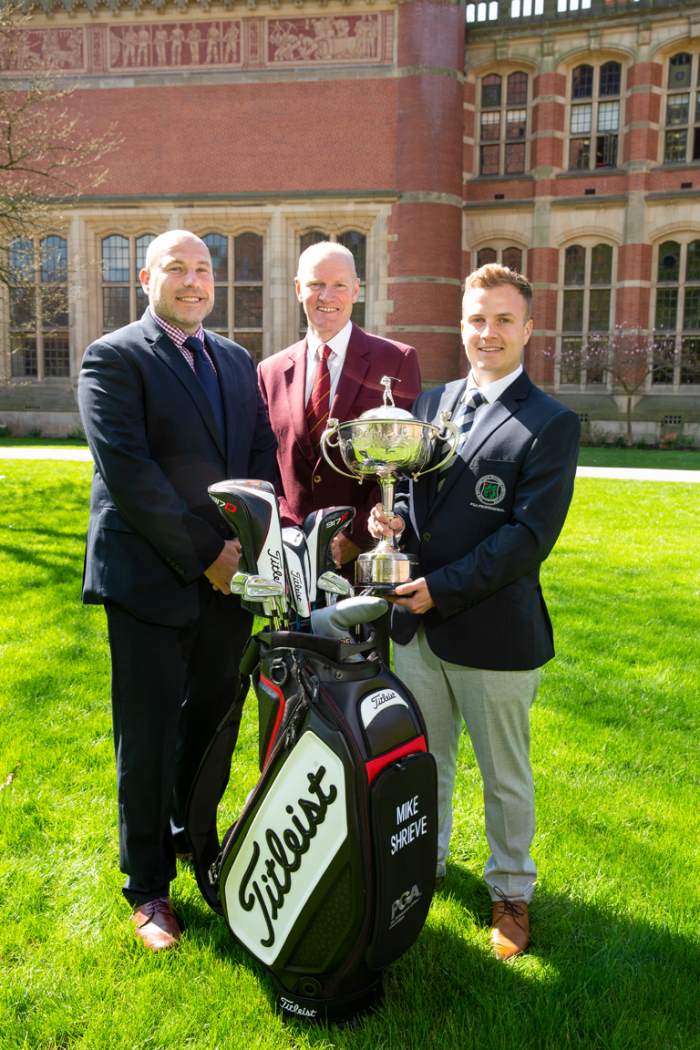 In recognition of his achievement, Shrieve collected the Whitcombe Cox Trophy and a cheque for £3,500 from Matthew Johnson, Titleist brand director, and PGA captain John Heggarty at the PGA Graduation Ceremony held at the University of Birmingham.