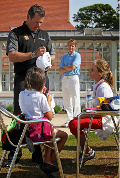 Eighteen Junior golfers travelled from as far afield as the UAE, Zambia, Bulgaria, Austria, Italy and Spain to take part in the event which started at the home of golf St Andrews. The bright young talents visited Lee Westwood at his house in Muirfield on practice day of the Open Championship. Lee hosted the inquisitive young golfers in his garden spending about an hour answering their questions whilst taking photographs with the juniors.