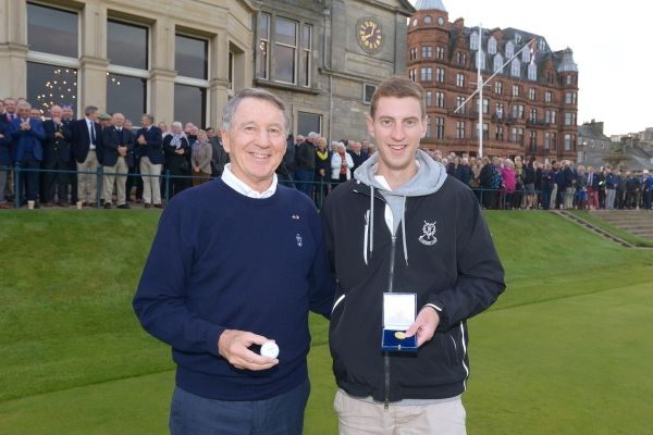 Oliver Mennie, in his third season as a caddie on the links, returned the Captain’s ball after attending the driving-in ceremony for the very first time. “It was difficult to see the ball because of the sun so when the Captain teed off, no one really knew where it was going. I was just lucky to be in the right place at the right time when it landed. I got on my knees and slid in for the ball. It’s my first year attending the driving-in ceremony so it’s a case of first time lucky too.”