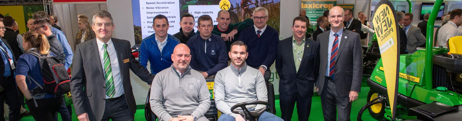 Pictured (top) on the John Deere stand at BTME 2019 are (standing left to right) John Deere Limited turf division sales manager Chris Meacock, Jon Gamble, Darren Skinner, Mark Simmons, Alex Newenham, Niels Sorensen, GCSAI general manager Damian McLaverty and BIGGA chief executive officer Jim Croxton, with (seated left and right) Matt Shaul and Andy Copeland