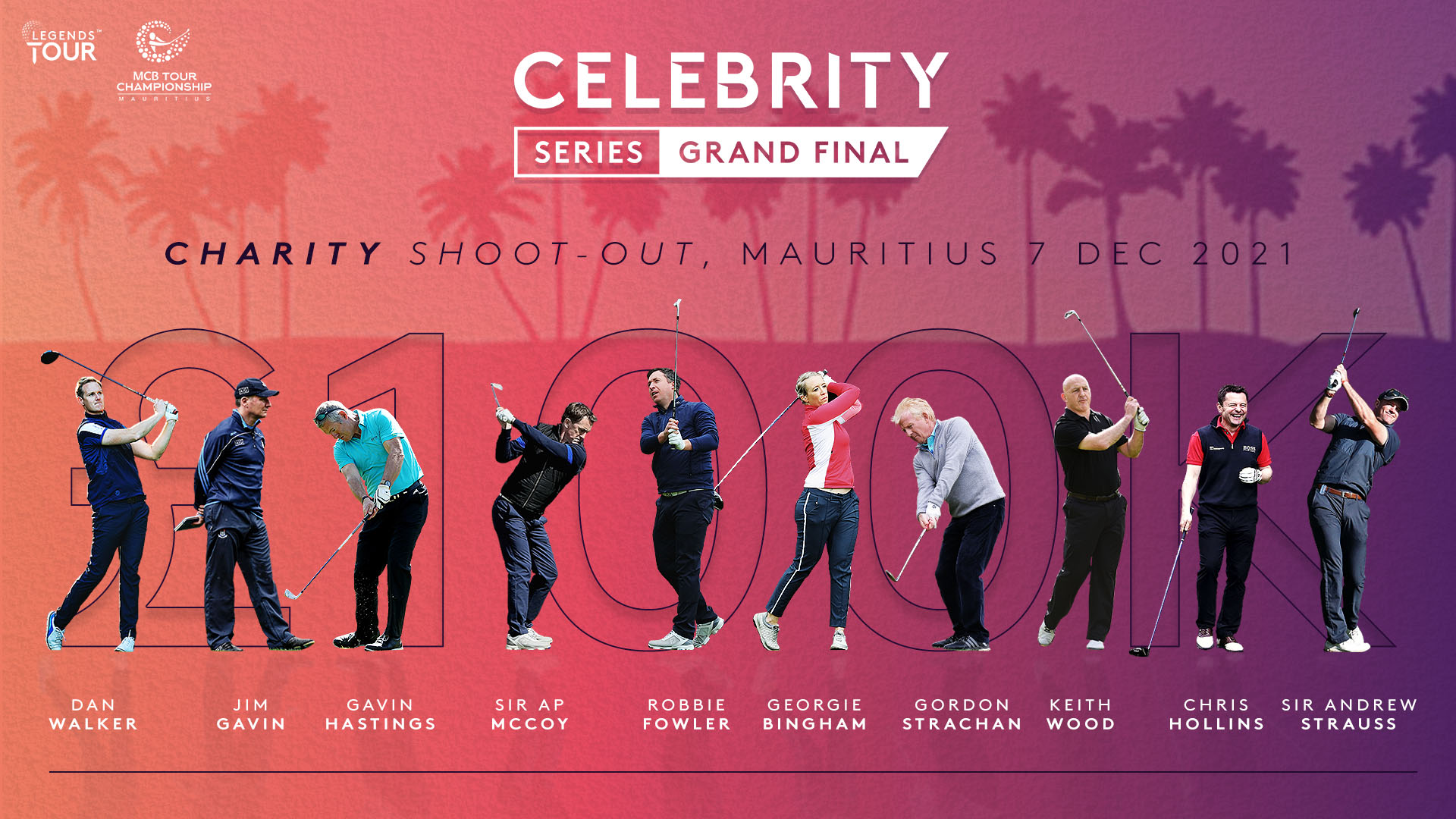 Ten of the biggest names from the world sport and entertainment will tee it up in the inaugural Celebrity Series Grand Final at the MCB Tour Championship – Mauritius in December.