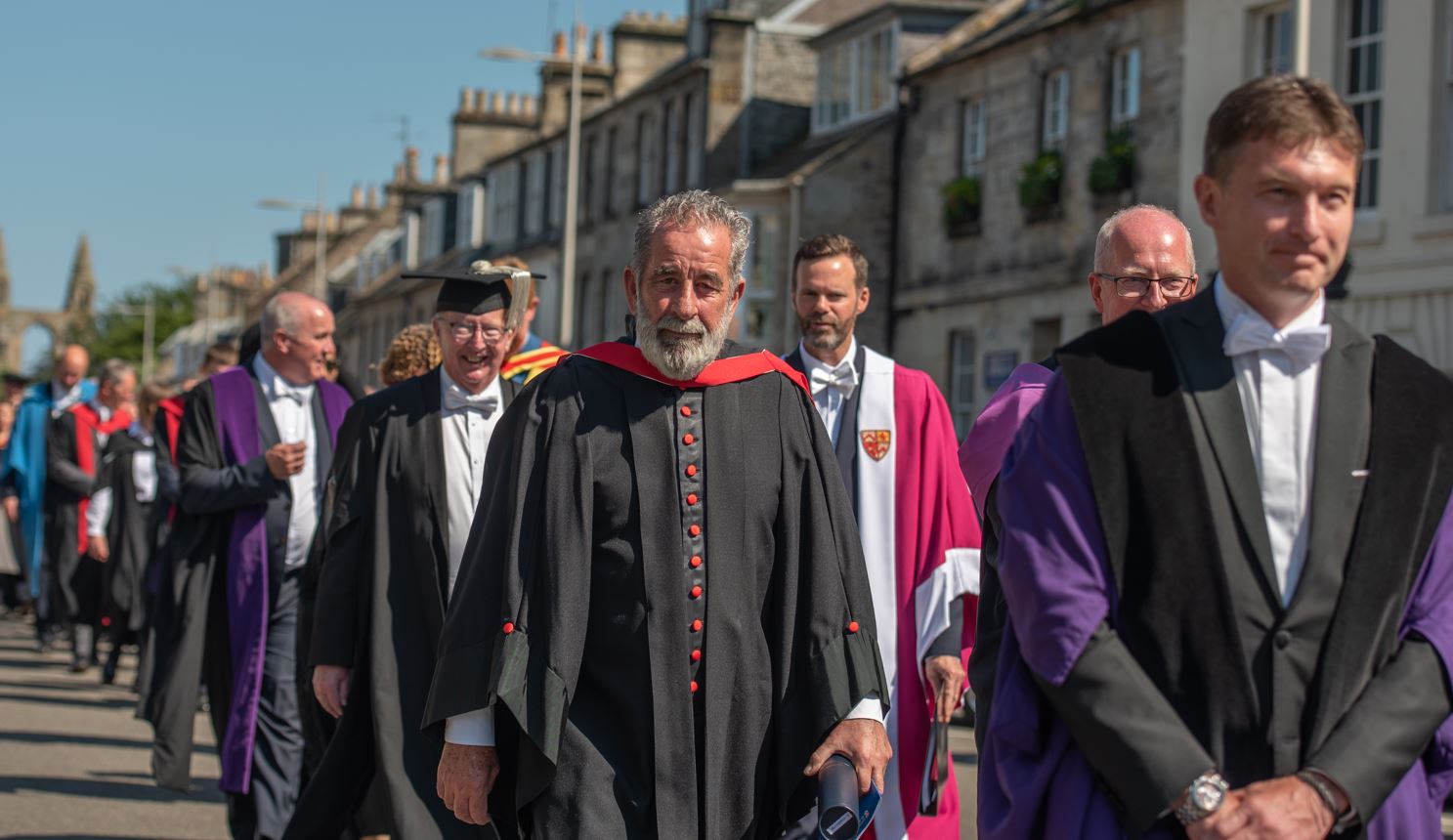 Following the ceremony, Sam took part in the traditional academic procession of new graduates from the Younger Hall to St Salvator’s Quad in brilliant St Andrews sunshine.