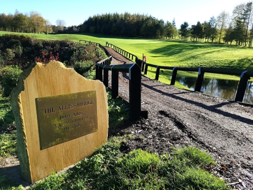 Moor Allerton’s Head Greenkeeper Adam Matthews explained: “The Alliss Bridge is a recently refurbished pathway that makes for an attractive feature on the first hole. It’s marked on either side with plaques that read ‘Peter Alliss, a great friend of the club’.