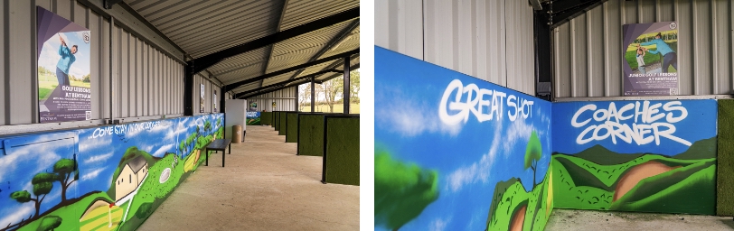 Marshall said: “We’re delighted with the artist’s cartoon style work for this project. We are fortunate to be able to combine an immaculately well-kept golf course for serious enthusiasts alongside offering a facility for complete novices to try golf for the first time with a bucket of balls and hired clubs. I think the new driving range décor sets the tone for that environment, highlighting that golf is a fun sport open to all from dawn to dusk seven days a week”.