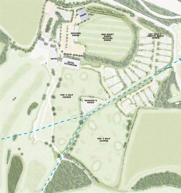 The proposal also includes new offices, additional parking, landscaping, an improved driving range, and a redesigned academy course.