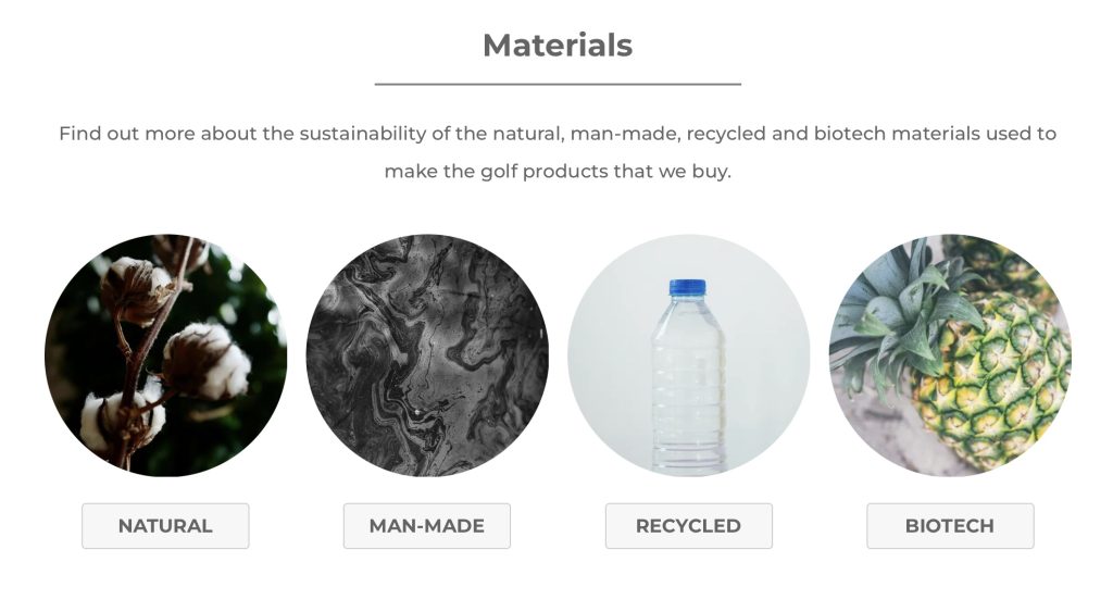 The GOLFING GREEN website also includes a ‘Resources’ section, which provides information on natural, man-made, recycled and bio-tech materials as well as details of sustainability certifications and organisations.