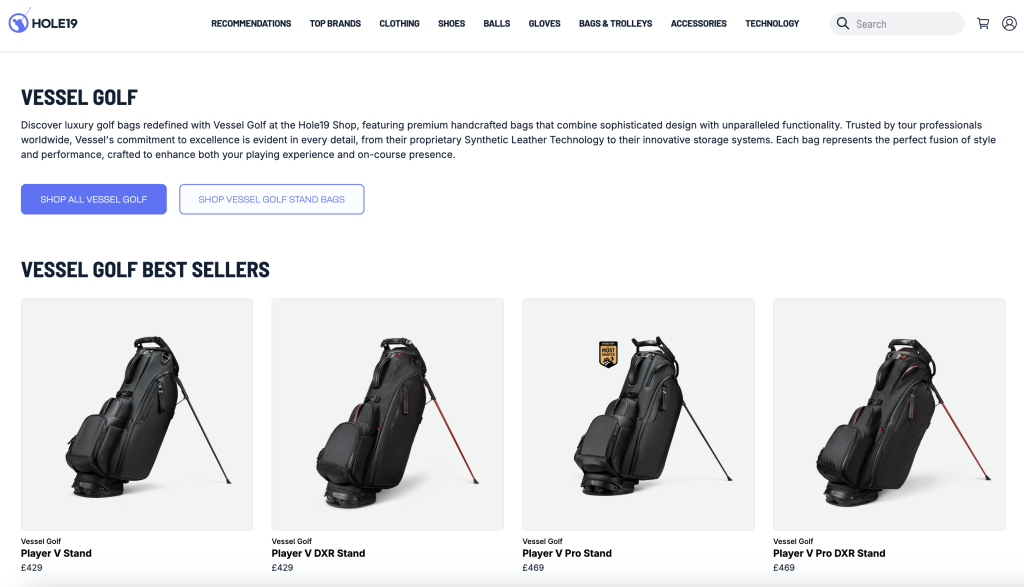 The Hole19 shop has attracted a diverse portfolio of partner brands, including notable additions such as VESSEL and Stewart Golf.