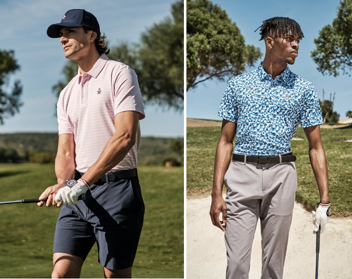 Colours in the first men’s golf delivery consists of aquatic inspired pool blue, quiet harbour (a new shade of indigo with trans-seasonal and cross-over appeal) and chambray pink. The colour palette in the second delivery includes murex shell, a new pastel shade of coral and blue grotto, a zesty shade of blue that provides a clean approach when mixed with refined resort neutrals like brown granite and sandshell.