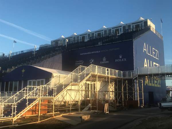 There will be final safety checks to complete on the largest temporary buildings before they are signed off and ready to be filled with all the necessary materials. These include the sky boxes on top of the largest grandstand in Ryder Cup history which stands some 23.5 metres high above the first tee and practice areas.