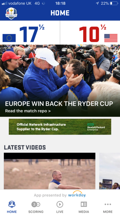 One of the most impressive elements of this year’s match was the Ryder Cup app. Michael Cole, the European Tour’s chief technology officer, has been elevating all elements of electronic communication on the Tour and the app had many remarkable features including a way to find a player out on the course who you want to watch and the shortest path to find him, navigating your walk around all the holes via GPS like Google Maps. Over 38,000 devices (either mobile phones, laptops or tablets) downloaded the app on the first match day and reports about how they were used and also how the crowd moved around the course (GPS tracking allows all that data to be collected as well) are eagerly awaited and could make a difference to the way fans enjoy big golf tournaments in the future.