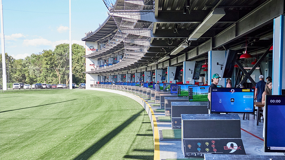 Back 9 Golf’s Indianapolis outlet features a three-storey range with 75 bays, a restaurant and a music venue able to host up to 550 people.