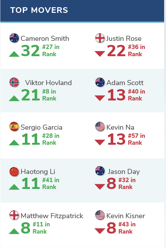 Eight of the top 10 FCV leaderboard were also in the top 10 last year, with rising Norwegian star Viktor Hovland and 2020 PGA Championship winner Collin Morikawa being the only new entrants.