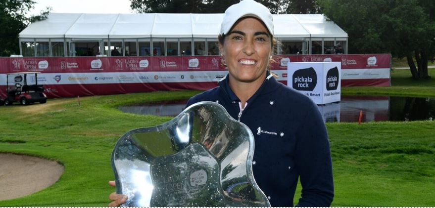 Carmen Alonso Maiden Victory Ladies Open Finland wearing g.April Glenmuir sweater