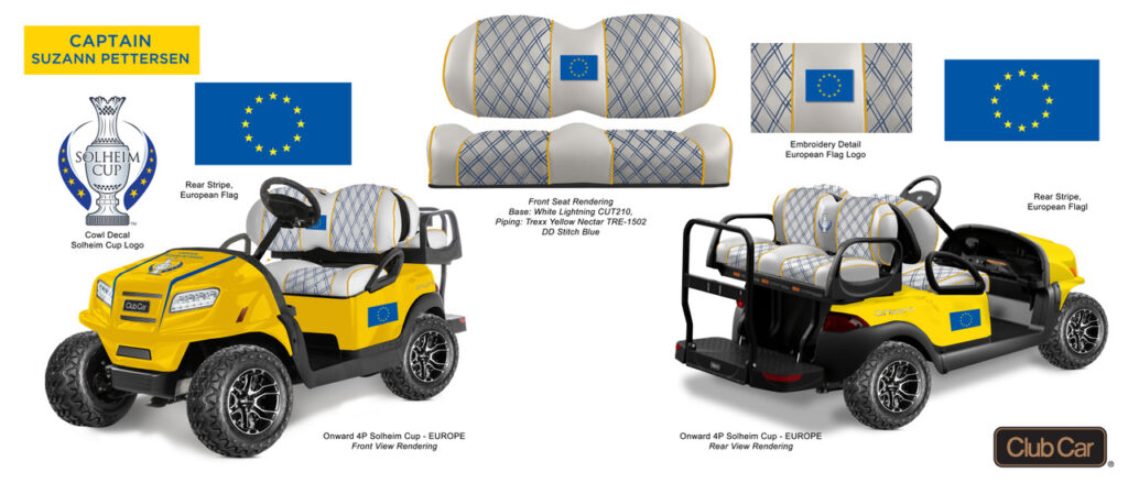 A total of 12 custom Club Car Onward vehicles will be manufactured for teams of the upcoming matches – six for Europe and six for Team USA – while a further 90 Club Car utility and transport vehicles will be provided to support event set-up and tournament operations.