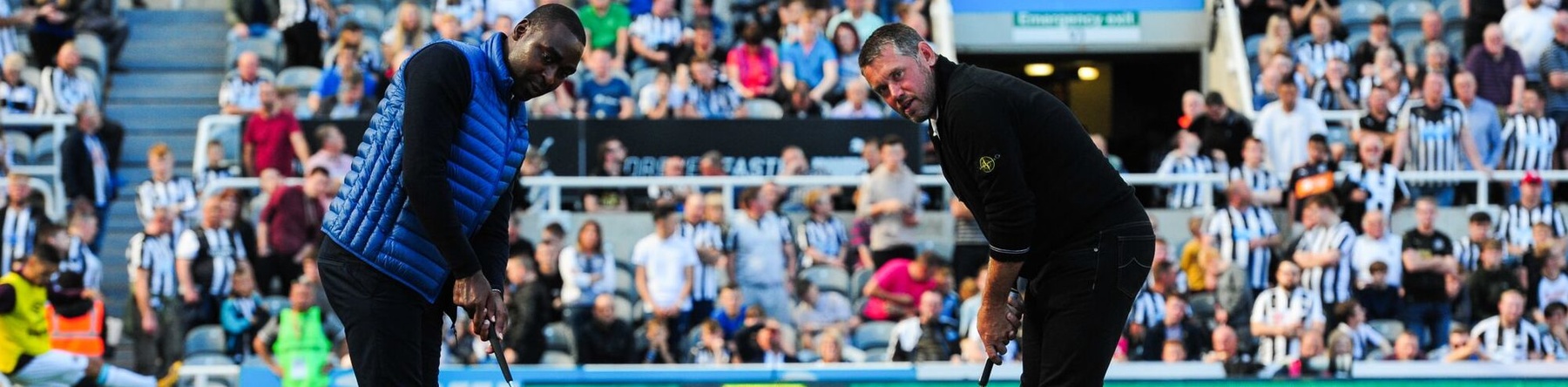 Magpies’ legend Andy Cole joined Westwood as they put their short game to the test in front of 52,000 Newcastle United fans at half time in their Premier League match against West Ham United. The pair took it in turns to putt down the 20 metre long surface in front of the dugout, which had been designed and installed for European Tour by Provision Events, the sponsorship activation specialists.