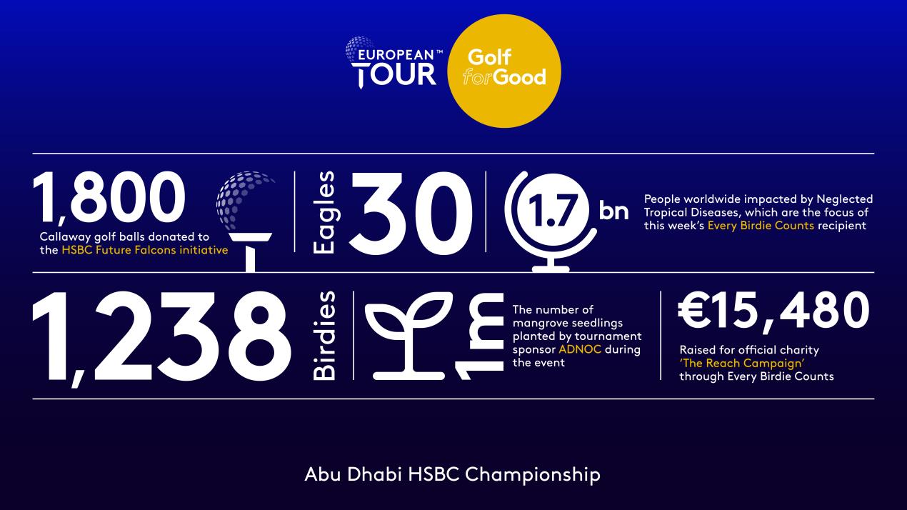 Tom Phillips, the European Tour’s Head of the Middle East Office, said: “The Golf for Good campaign made a very positive contribution to a hugely successful Abu Dhabi HSBC Championship – the opening tournament, and first Rolex Series event, of the European Tour’s 2021 Race to Dubai. It was not only an action-packed week on the golf course at Abu Dhabi Golf Club, but there were many initiatives taking place off the course – all with the aim of making an impact locally and globally.