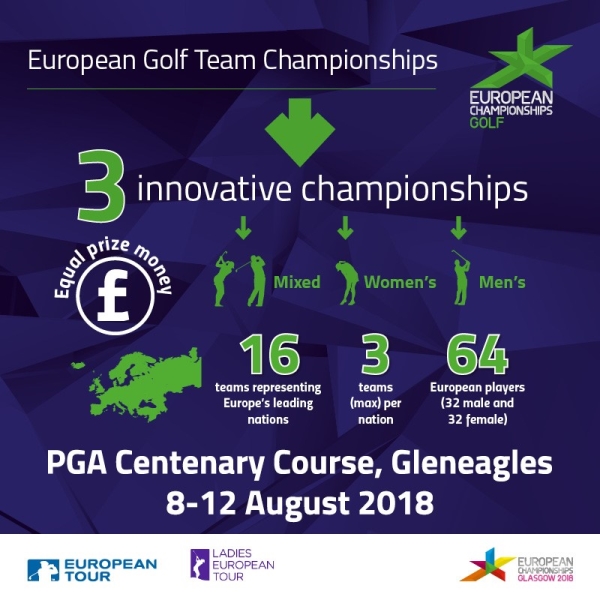 The inaugural European Golf Team Championships will take place at Gleneagles in Scotland from August 8-12, 2018 as part of the innovative multi-sport Glasgow 2018 European Championships.