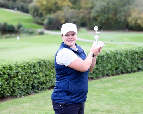 Two chips later and a tap-in saw her down in four leaving Hall with two putts to claim the cut-glass trophy and winner’s cheque. Both were needed. She sent the first scooting past the hole and was left to sink a six-foot putt for victory.