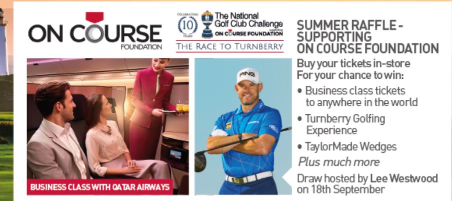 He said, “Having American Golf on board is great news for the two separately themed Summer Raffles. To have tickets on sale at over 100 venues is a wonderful boost for the raffle and will help us raise even more money for On Course Foundation and in turn increase awareness around the charity.