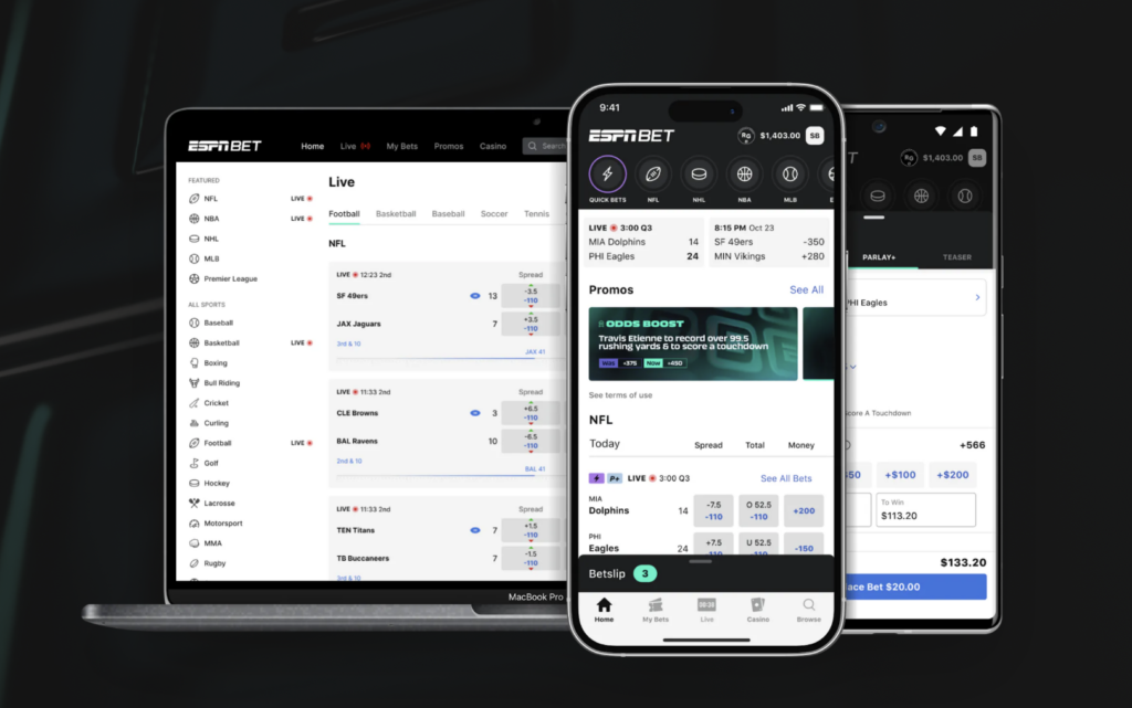 ESPN BET is an online sportsbook that combines PENN’s proprietary in-house technology and sportsbook operational expertise with ESPN’s multi-platform reach.
