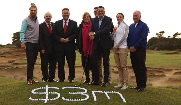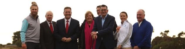 Pictured above : from left Jack Wilson, ISPS HANDA PGA Tour of Australasia player; Stephen Spargo AM, Golf Victoria President; Hon. John Eren MP, Minister for Sport; Lisa Neville MP, Labour Member for the Bellarine; Simon Brookhouse, Golf Victoria CEO (standing over the back); Hon. Daniel Andrews MP, Premier of Victoria (holding golf club); Stacey Peters, 2013 Vic Open Champion; Ian Wheatley, 13th Beach Golf Links President