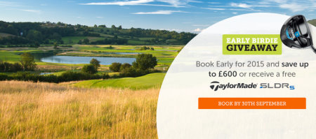 In addition to TaylorMade SLDR S drivers and fairway woods, plus Breakpoints that can be used on future bookings or with sister companies Teeofftimes.co.uk and BookaSpa.com, the Early Birdie promotion also gives golfers some great extras such as room upgrades, free buggies, range tokens and exclusive drinks offers.