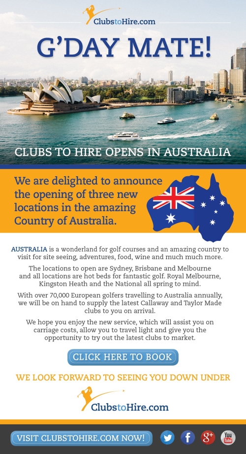 Clubs to Hire has expanded it offering into a new continent following the announcement of three new locations in Australia.