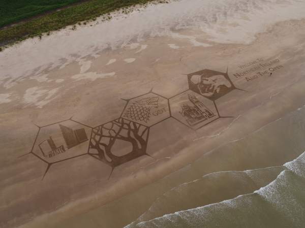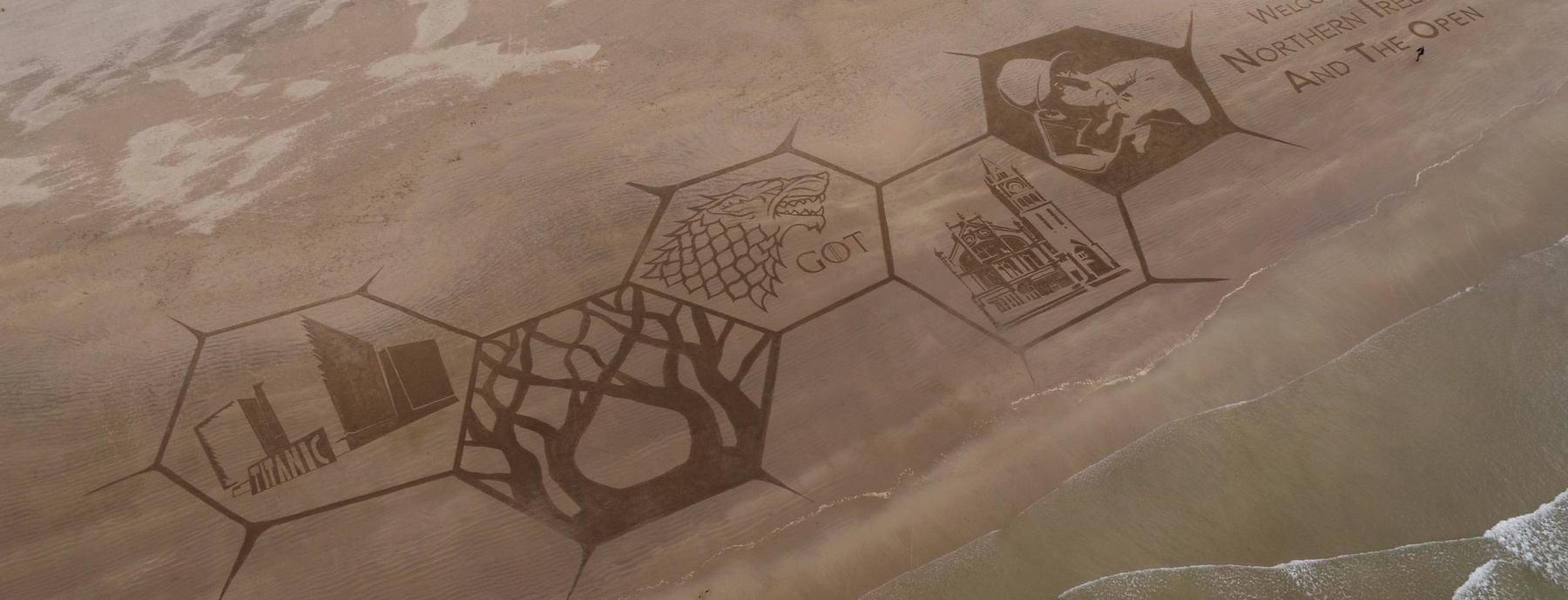 On 3 July 2019, Tourism Ireland collaborated with leading sand artists, Sand in your Eye, to depict some of Northern Ireland’s most treasured attractions and figures in Northern Ireland.